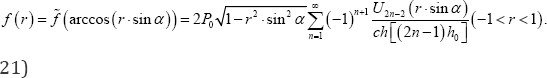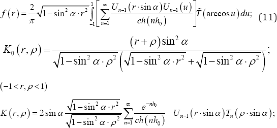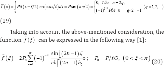 It is obvious that the function ω0 (r) with respect to the symmetry of line x = 𝓁/ 2 in this special case, and, consequently, the function x0 (r) according from equation (14) are odd functions, therefore, the components of the second integrals in equations (10) and (15) containing polynomials r or t in arguments tend to zero, so that, the above-mentioned equations and the kernel-matrix Kmp of system of equation (14) are simplified .and the expressions of functions