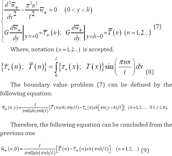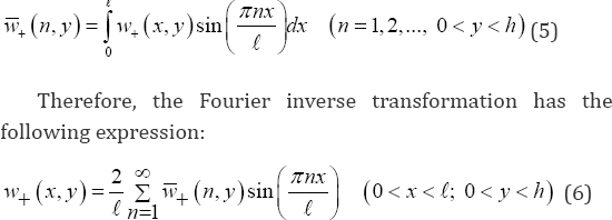 Consequently, the determination of supporting problem (2) for the rectangle D+ can be considered only. Based on the reference [8], the above-mentioned problem can be determined via Fourier finite sine transformation on the variable x .