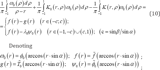 The first integral of equation (10) for ρ=r is assumed as a main value of the Cauchyfs relations. Meanwhile, Tn(x) and Un-1(x) are Chebyshev polynomials of the first and the second kind,