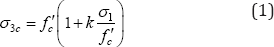 Where, k is a confinement factor (based on comparisons with the experimental punching program, Newhook [10] determined that a value of k=10 was appropriate for the bridge deck application).