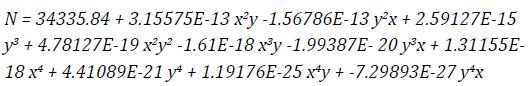 Using the above equation, the geoidal height N was calculated for all check points (9 points). The difference between calculated and existing value of N for all check point does not exceed 1.8 cm, while RMS error is less than 1 cm. All polynomials of higher degree will improve the accuracy with a very small rate. This result is highly superior to values obtained from EGM 2008 Model for the same points, where the difference exceeds 70 cm. It also competes very well with results of previous studies outlined in the literature review of this paper where best results are between 1 cm and 4 cm.
