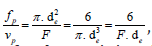 The volume of one particle based on its geometric shape can also be expressed as the volume of the ball . d 6 e p v =π . Then the ratio of the surface of the particle to its volume is (4)