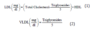 A biochemical analyser manufactured Vital scientific N.V. Netherlands was used to evaluate the amount of total cholesterol (TC), triglyceride (TG), high density lipoprotein cholesterol (HDL-C). LDL-C and VLDL-C was calculated by the Friedewald equation: