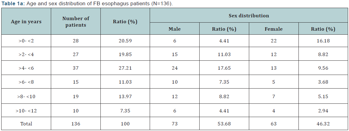 A retrospective study of 270 patients with FB in aero-digestive tract reported to Government ENT Hospital / Osmania Medical College, Hyderabad, Telangana state, India in year 2013- 14. 136 cases were FB’s in Esophagus and 80 patients FB had bronchus in pediatric age group. Out of 136 FB oesophagus