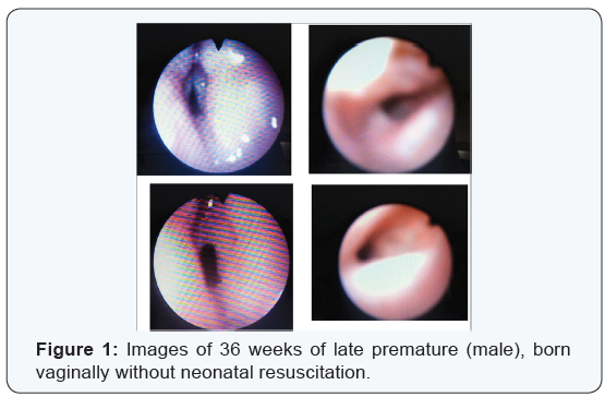 After the expansion maintained a reduction in the laryngeal lumen of approximately 30% with progression cannula number 3 with ease. Still symptoms, but milder, at 2 months and 18 days passed new procedure showed subglottic stenosis in the cricoid further wedge the 50% level, after further expansion progressed easily cannula number 3 and number 3.5 with resistance. Patient held up well without respiratory effort without difficulties feedings and mild stridor. We chose clinical and expectant management, because the patient would no longer gains with new dilations since had no more difficulty breathing (Figure 1).
