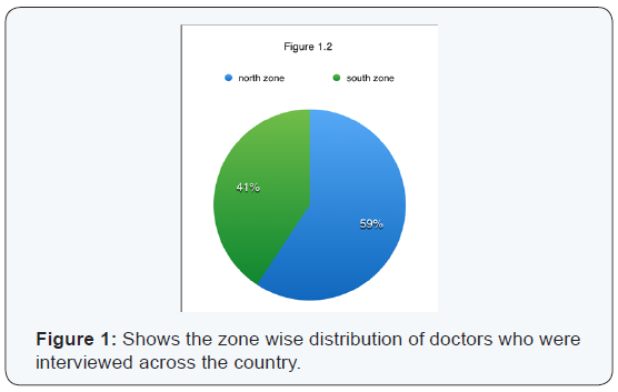 A total of 81 ENT specialists, 12 women and 69 men, with an average 14.62 years of experience underwent the detailed interview. The ENT specialists represented 14 states out of the 29 states in the country and represented many of the health care settings that prevail in India. Table 2 in the Tables and Figures section shows the state-wise distribution of doctors across the country. Figure 1 shows the zone wise distribution of doctors across the country. Figure 2 in the Tables and Figures section shows the distribution based on type of health care setting represented by these doctors.