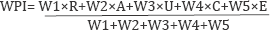 Where, Wi is the Weight applied to each of five components