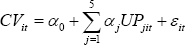 Where CV is the consummate volume, UPJ are the unit prices of the five slices, i = 1.....,21 represent the Tunisian governorates t = 1997,....... , 2012 and is the time.