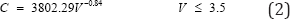 This equation permits the horizontal visibility VV in km to be expressed in terms of aerosol mass concentration C in ng m-3 and vice versa. Even in some cases, the greatest change in horizontal visibility is attributed to the PM10 range [21]. In Shao et al. [22] in a study on North East Asian dust storms, found two equations for estimating dust concentration from visibility with following separation.