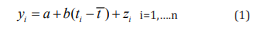 Where y. is the time series value corresponding to time t and z. is the inter-annual variability superimposed to the linear trend, n the number of data. Parameter a is the mean value and b is the slope which represents the average rate of change for the variable y. Parameters a and b were determined by means of least square fit. Confidence intervals for b can be estimated at the a significance level according to the expression [31-34]: