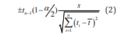 Where tn-1 is the 1-α/2 quantil for a t-student distribution with n-1 degrees of freedom.