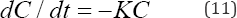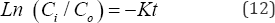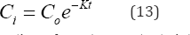 where K is the reaction rate coefficient with dimensions of 1/ time and C is the nutrient concentration. According to Equation (11), the rate of loss of any of these nutrients is proportional to the amount of available substance that is present in the water column. The integrated first order rate law yields Equation (12):