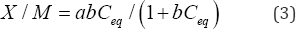 Where X/M and C are the same units as defined above, bis a constant related to the binding energy (L/kg), and a is the maximum amount of solute that can be sorbed by the sorbate, is the soil uptake quantity (mg/Kg). The Langmuir equation can be rewritten in the following linear form shown in Equation (4):