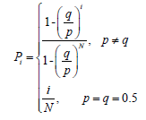 This procedure can be extended to look at risk by analyzing the probability of a ruin for an insurance company. When a random walk occurs, a similar method is used to calculate the probability of reaching N = a + b wheni = b :