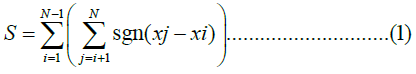 Where xj and xi are the sequential precipitation values in months j and i (j> i) and N is the length of the time series. A positive S value indicates an increasing trend and a negative value indicates a decreasing trend in the data series.