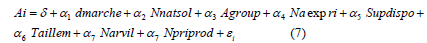 Using the method of the instrumental variable to estimate the impact of adoption of improved maize on the outcome requires the presence of AiVi in the error term of equation (3). According to Dimara & Skuras (2003), the decision of a producer to adopt or not to adopt is determined by the expected utility resulting from the difference between the expected services from the adopter and the non-adopter. Producers, by taking into account their own non-observed gain , and exogenous variables x may auto-select themselves. This leads to a correlation between AiVi and z. The conditional value expected of AiVi given by (z, x), can be written as follows: