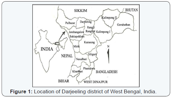 Darjeeling is the Northernmost hilly district of West Bengal which is a part of the Eastern Himalaya and it lies between 27º31’05” and 26º27’10” North latitude and between 88º53’00” and 87º59’30” East longitude. The total area of the district is 3254.7 sq. km. There are four Sub-Divisions viz., Darjeeling, Kalimpong and Kurseong which are hills and Siliguri falls under plain (Figure 1). The altitude of the district varies from ± 130 m at Siliguri to as high as 3660 m at Sandakphu. During field studies in the regions revealed a huge wealth of traditional