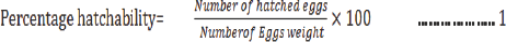 Percentage hatchability: The number of hatchlings was estimated using the volumetric method. The hatchling after swimming into the happa tanks containing 900 Liters of water, a sample of 1 liter was collected and the number of hatchlings was estimated from the sample. The percentage hatchability was calculated from the number of fry counted as described by [13].