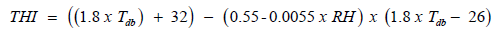 THI values were calculated using the average temperature and relative humidity obtained from the data logger. THI was defined by the formula [12]: