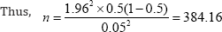 Where n is the sample size, Z is the proportion of normal distribution corresponding to the required significance level (5%) which is 1.96, P is the proportion of pregnant women with anemia which is 50% and d is the relative precision or tolerable error of the estimate from the study which is 5%.