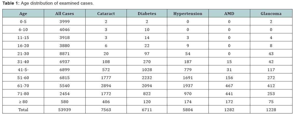How to cite this article: F N Sayegh. Evaluation of Aging Disorders by 54 000 Consecutive Ophthalmic Cases. JOJ Ophthal. 2016; 1(3): 555564. DOI:10.19080/JOJO.2016.01.555564