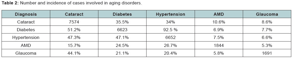 Keywords: Aging disorders; Diabetes; Hypertension; Cataract; Glaucoma; Age related macular degeneration
