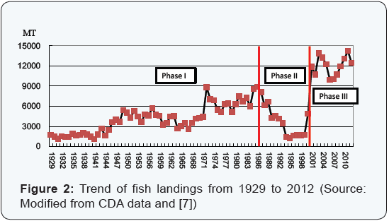 From a resource point of view, it can be said that there are three historical phases of fish landings (Figure 2) that is, until the late 1980s (Phase I), from the late 1980s to 2000 before hydrological intervention (Phase II) and after the intervention in September 2000 (Phase III).