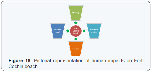 The presence of opportunistic species like Scolelepis and Prionospio species in Dharmadam beach could be connected to the AMBI results. From this it could be assumed that the pristine nature of Dhramadam beach could be altered in future due to human activities and the accumulation of opportunistic polychaetes may be an indication to that. Based on the above findings, it is clearly observed that the Fort Cochin beach is under peril due to anthropogenic effects and the proliferation of r selected species (opportunistic) depicts the above fact. Elimination of k selected (species found in undisturbed conditions) species in Fort Cochin beach (Station 2) stating the notable effects of human activities in station 2. If the activities sustain constantly, it will lead to the ecosystem damage in near future.