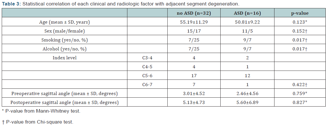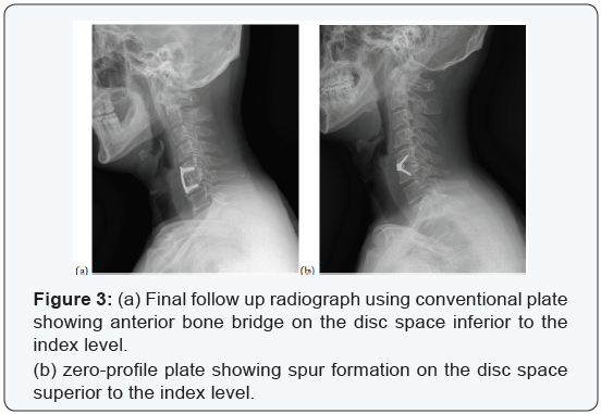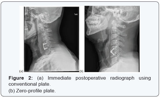 How to cite this article: Jae-Sung A , Ho-Jin L Eugene J P, Ho-Seok L. Adjacent Segment Disease after Anterior Cervical Inter body Fusion using Conventional Plate versus Zero-Profile Implant - A Preliminary Report. Ortho & Rheum Open Access J. 2016; 3(1): 555603. DOI: DOI: 10.19080/OROAJ.2016.03.555603