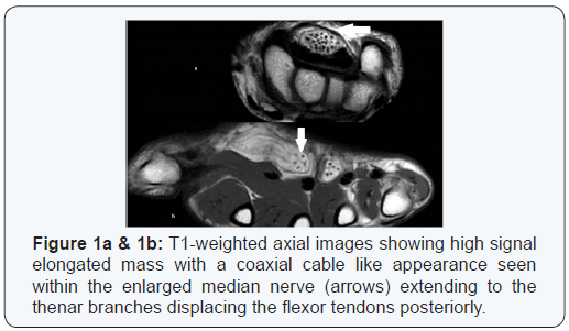 How to cite this article: Naveen R. Fibrolipomatous Hamartoma of Median Nerve: An MRI Diagnosis. Ortho & Rheum Open Access J. 2016; 3(3): 555614. DOI: 10.19080/OROAJ.2016.03.555614
